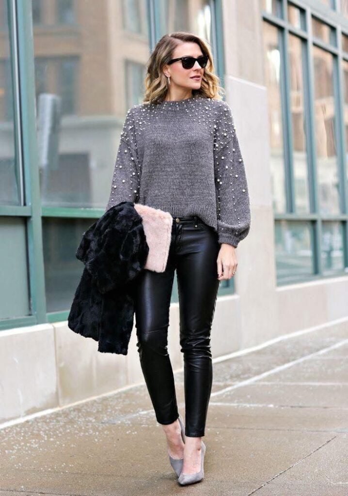 8. Colorblock Sweater and Leather Pants
